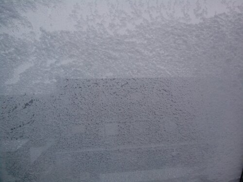 Glas op het oosten zodat wind de sneeuw op de ruit wierp?
