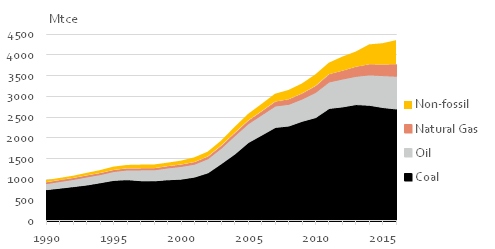 Voor haar economische groei zette China tot 2015 in op het traditionele ontwikkelpad met veel kolen. In het 13e vijfjarenplan veranderde dit ontwikkelpad voor de periode 2016-2020. Voor de energiesector werd ingezet op een ‘schoon, koolstofarm, veilig en efficiënt energiesysteem’. Als onderdeel van dit plan heeft China onder andere de bouw van veel nieuwe kolencentrales uitgesteld of afgesteld, werd ingezet op elektrisch vervoer en werden duurzame energie doelen gesteld.