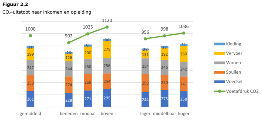 Ik noem het een open deur, maar vaak wordt de theorie aangehangen dat een hoger inkomen tot milieubewuster gedrag leidt en dat daarmee de klimaatimpact zal dalen. De zogenaamde milieu Kuznetscurve, waarbij gesteld wordt dat het inkomen eerst moet stijgen tot een bepaald niveau voordat mensen milieubewuster gaan leven. Bij klimaat is dat in de resultaten van het onderzoek van I&O research niet terug te vinden:
