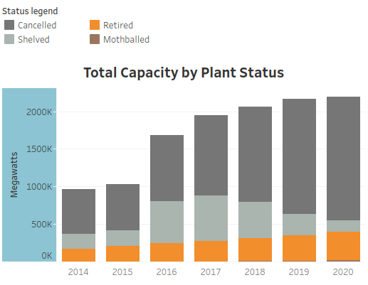Tegenover de krimp in kolenvermogen in aanbouw staat een stijging in het vermogen dat gecancelled is en gesloten. Het schiet nog niet echt op met sluitingen, maar het feit dat het vermogen van afgeblazen kolencentrales sinds 2014 stijgt is een mooie eerste stap. Een paar jaar geleden was de verwachting dat met name Zuid- en Zuidoost-Azië nog een forse groei zouden doormaken. Inmiddels hebben de regeringen van Bangladesh, de Filipijnen, Vietnam en Indonesië plannen aangekondigd om 62 GW aan geplande kolencentrales te schrappen. Daarmee daalt de pijplijn aan kolenvermogen met 80% sinds 2015, aldus Global Energy Monitor in Boom & Bust 2021. Ook Carbon Brief schetste halverwege 2020 geen rooskleurig beeld voor de kolensector.