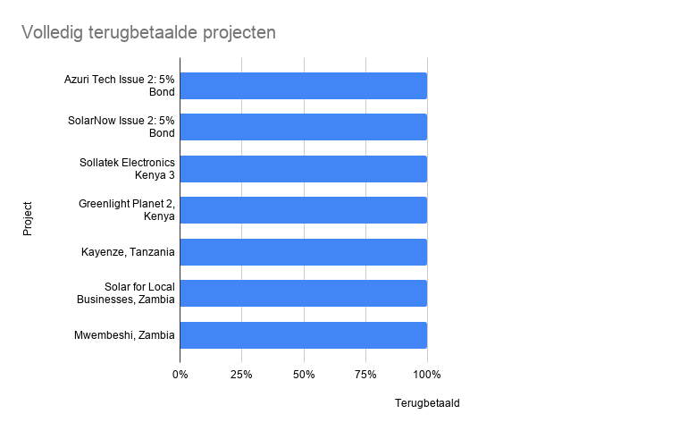 In totaal gaat heb ik na Sunfunder in zeven projecten geïnvesteerd, waarvan het geld volledig terugbetaald is. Daarnaast heb ik in 35 projecten geïnvesteerd, die nog niet volledig zijn terugbetaald. Een klein aantal daarvan heeft terugbetalingsproblemen, soms mede veroorzaakt door corona.