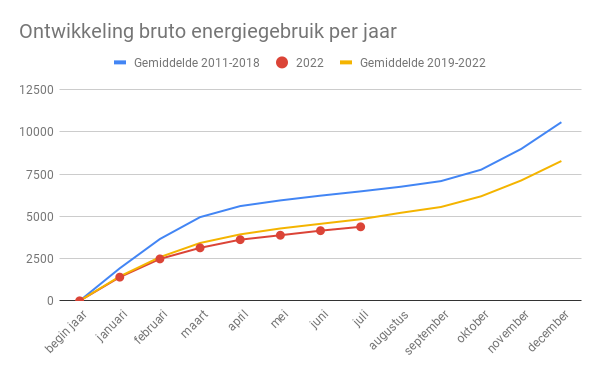 Ons bruto energiegebruik lag in juli op 229 kWh. Een besparing van 26% ten opzichte van juli 2021. In de eerste zeven maanden hebben we 4.384 kWh energie verbruikt, dat is 9% lager dan we gemiddeld verbruiken sinds we infraroodverwarming hebben en 25% minder dan toen we met aardgas stookten. Ik verwacht dat we voor 2022 op een jaarverbruik van rond de 7.500 kilowattuur uitkomen.