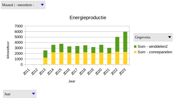 Vanaf mei is goed te zien wat het effect is van de extra winddelen. Vanaf mei tot en met oktober hebben we per maand meer energie geproduceerd dan gebruikt. Sinds de aanschaf van extra winddelen hebben we enkel in november en december meer elektriciteit gebruikt dan geproduceerd.
