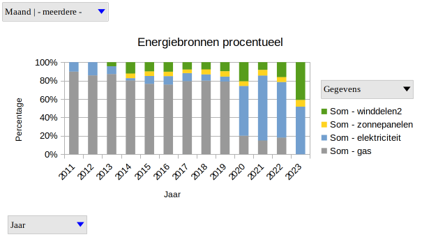 Op jaarbasis produceren we nu ruim 5.500 kWh. Waarvan bijna 3.200 kWh van onze winddelen. Op jaarbasis is de verwachting dat deze gemiddeld 4.500 kWh opleveren, maar ik vermoed dat dat wat lager uit zal komen.