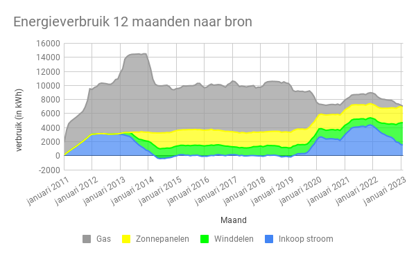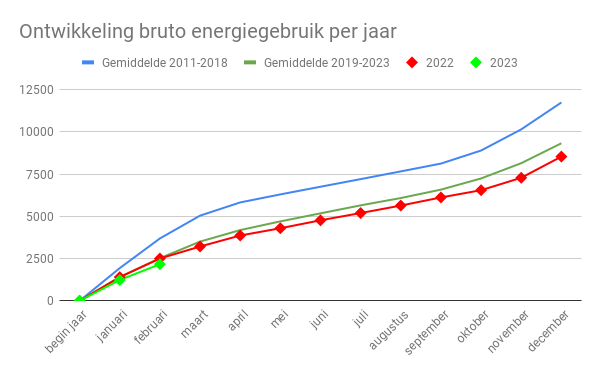 De verwachting is dat de leveringskosten voor elektriciteit nog wel terug lopen na het stookseizoen, omdat onze zonnepanelen en winddelen samen de komende maanden een groter deel van ons elektriciteitsgebruik gaan leveren. Of dat voldoende gaat zijn om een de energierekening te laten dalen tot onder het niveau van 2022 weet ik niet, dat hangt ook af van de ontwikkeling van de elektriciteitsprijs. Mijn verwachting is dat deze de komende maanden gaat dalen.