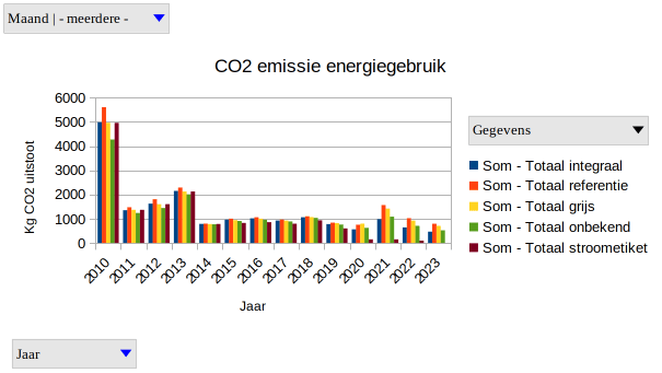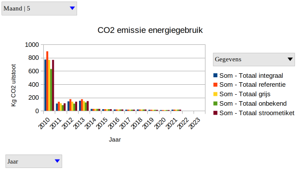 Over de eerste vijf maanden van 2023 ligt de CO2 uitstoot volgens het stroometiket op 0 kilogram. Volgens de referentie methode ligt de uitstoot op 791 kg.